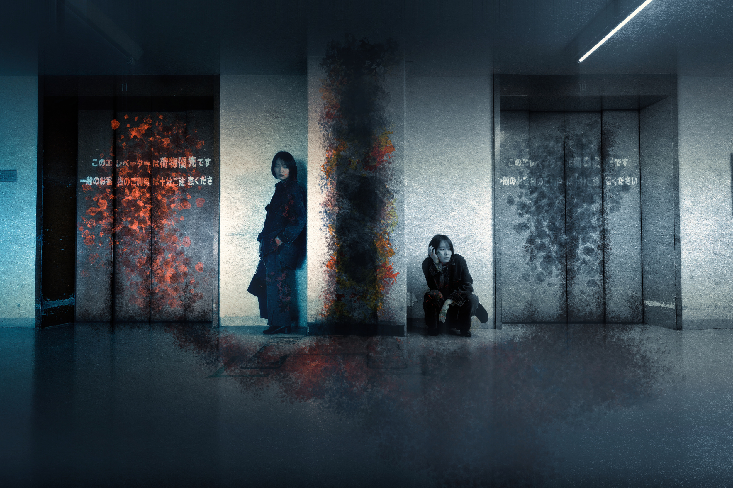 In another case, a large commercial building constructed in the 1970s was closed in 2021 for redevelopment. However, the project stalled due to escalating construction costs, resulting in a partial reopening. I sensed a unique atmosphere in the old, dark lift hall and created a fantasy-occult-style collage.