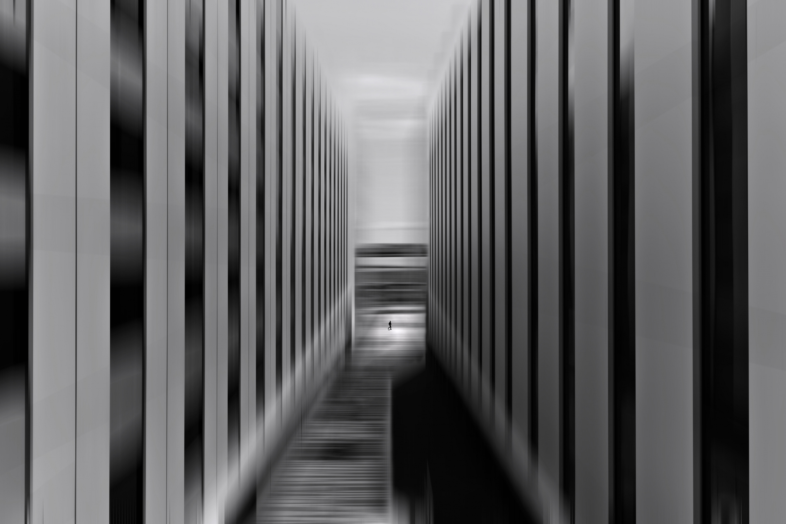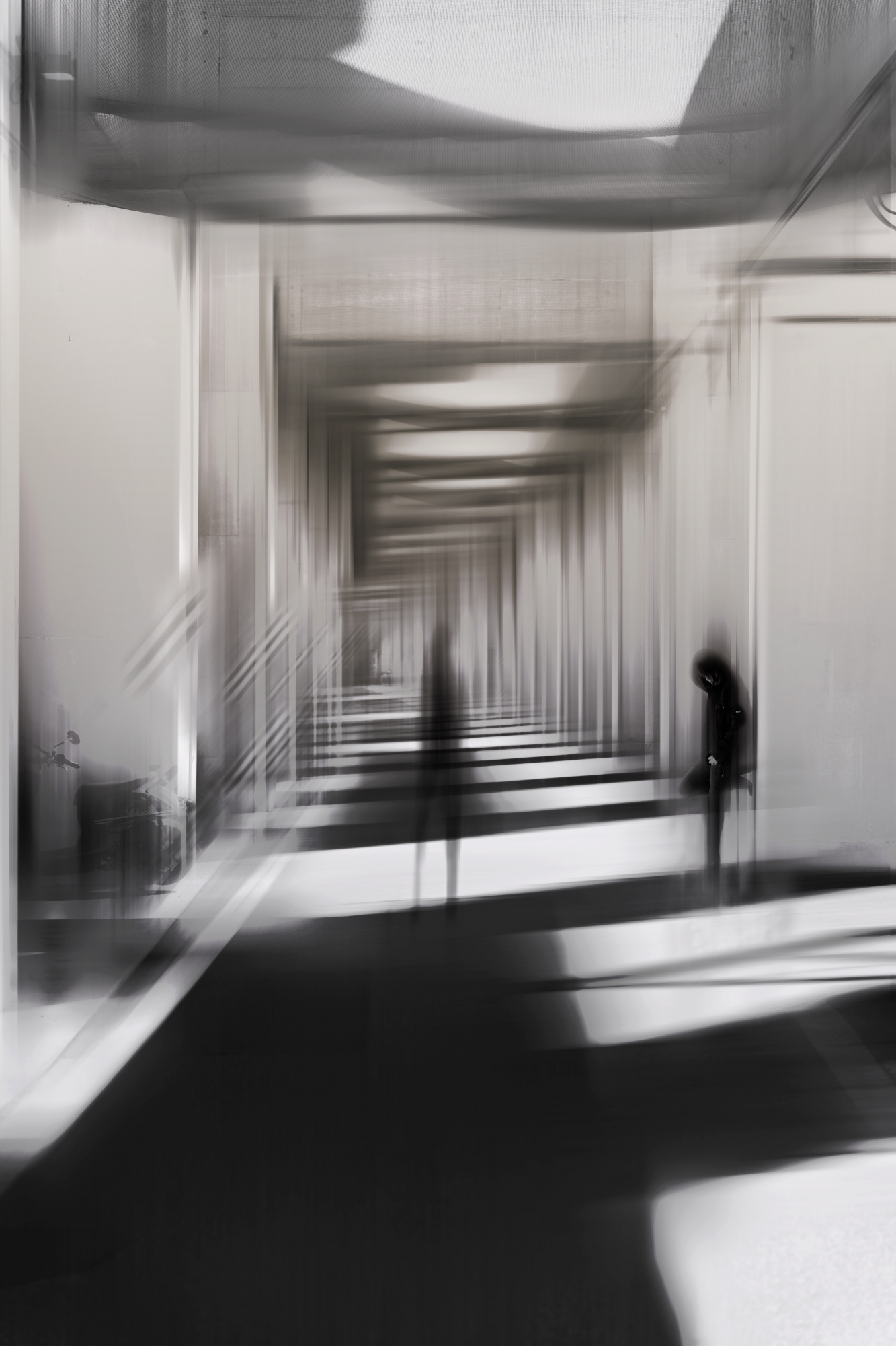 By placing people within these scenes, I can emphasize and direct the narrative while adding geometric intrigue through buildings and structures. My photographic work integrates abstract components to encourage individual interpretation by viewers.  I experiment with out-of-focus effects, different types of blur and combining multiple images to increase the level of abstraction slightly.